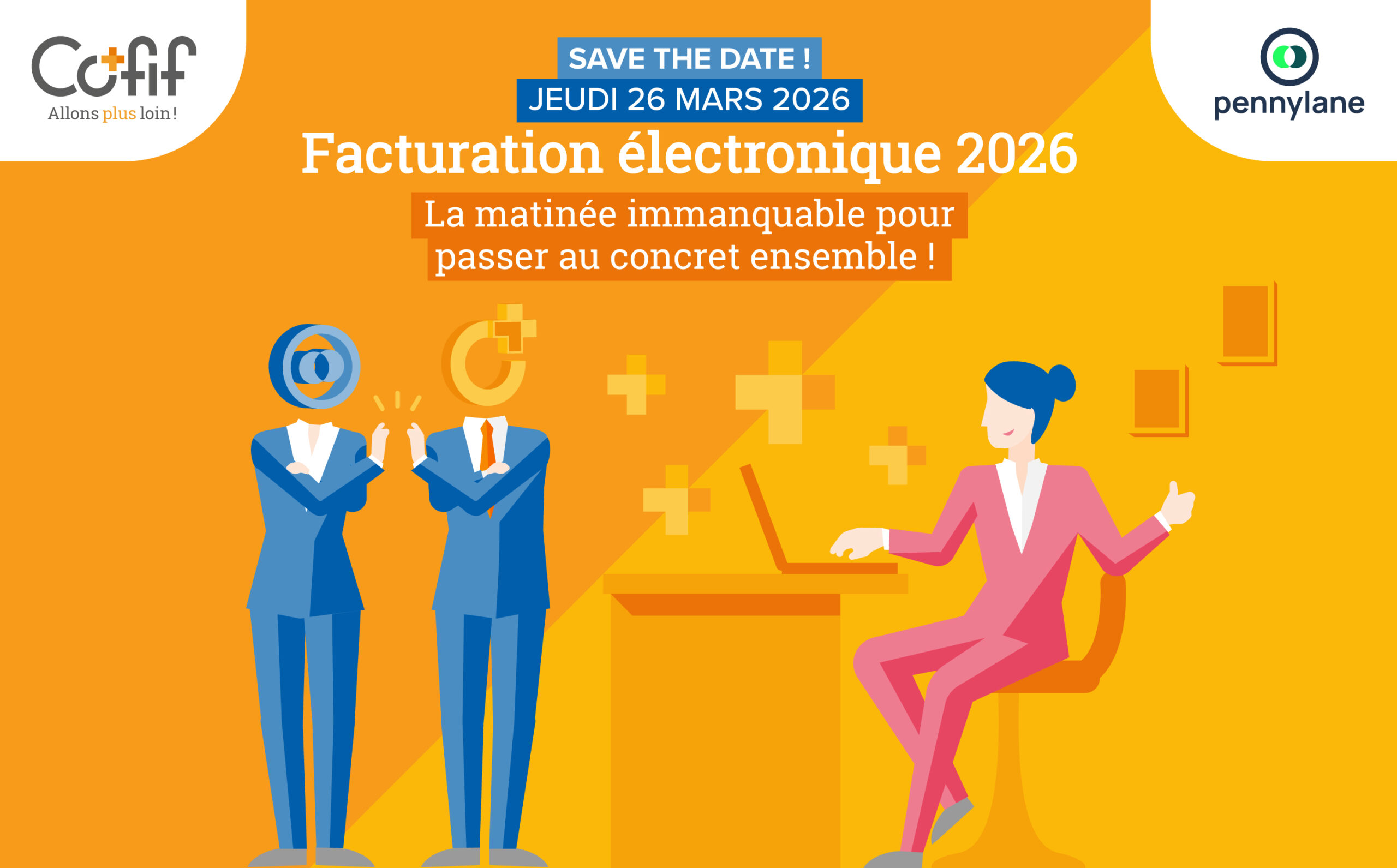 ☝️ Parce que cette réforme concerne TOUS nos clients, quelque soit leur structure, nous organisons cette matinée essentielle d’échanges, de démonstrations et mises en pratique appliquées à des cas concrets. Les collaborateurs Cofif et notre partenaire Pennylane seront là pour répondre à toutes vos questions !
